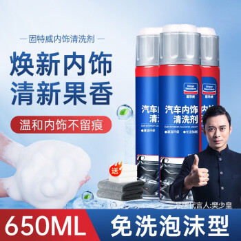 固特威 汽车内饰清洗剂多功能泡沫清洗剂清洁车内织物顶棚皮座椅皮革 汽车内饰清洗剂【三瓶装】