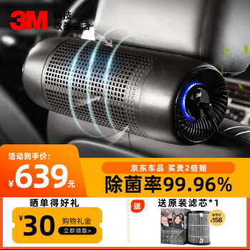 3M车载空气净化器 车内除甲醛pm2.5去异味烟味68002杀菌车家两用