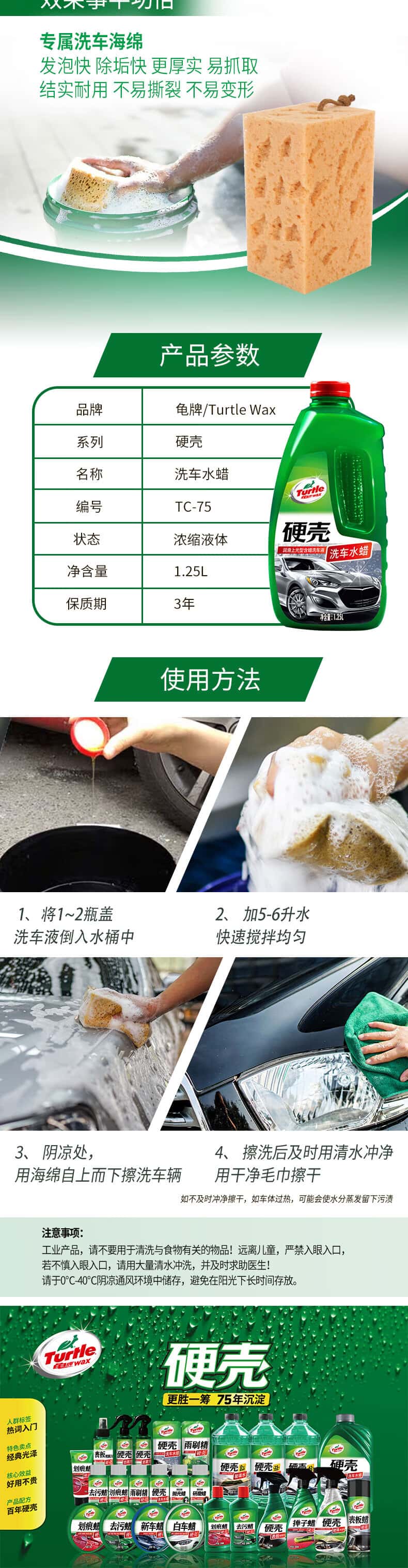 商品名称:龟牌(Turtle Wax)硬壳高泡沫洗车液水蜡套装汽车去污清洗剂泡沫剂1.25L TC-75