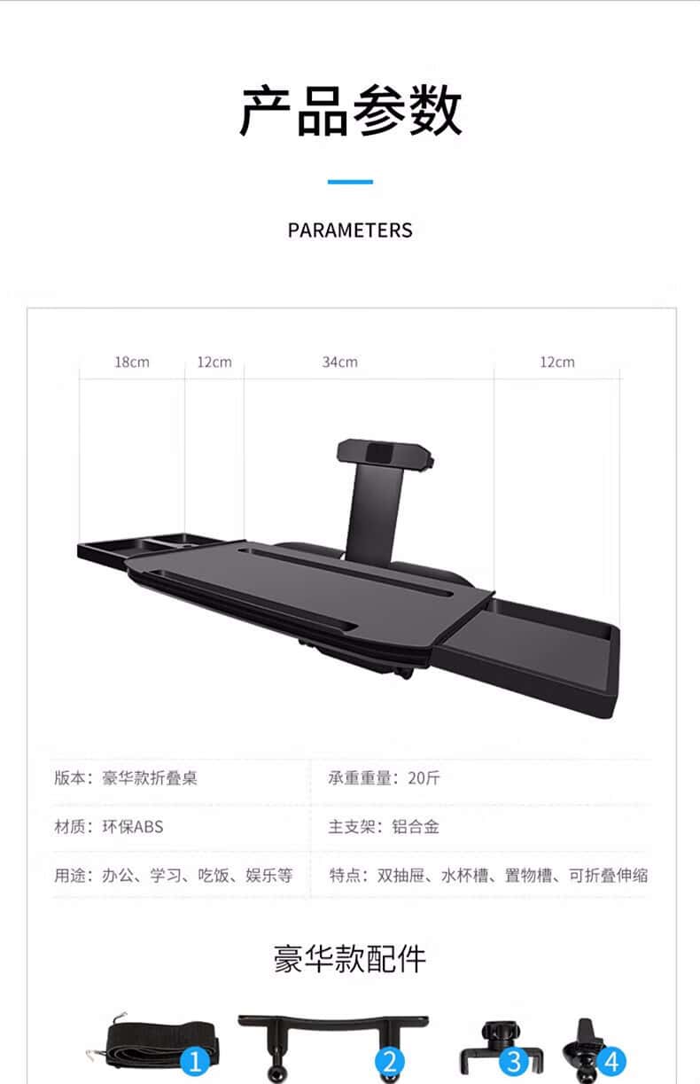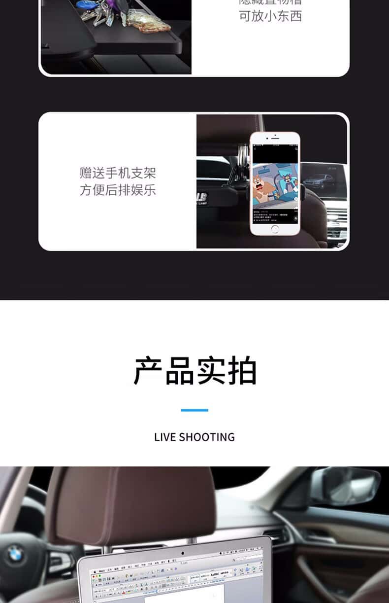 商品名称:卡斯兰 车载小桌板折叠桌 汽车餐桌电脑桌支架后排车用吃饭办公小桌子汽车后座电脑写字桌平板高端手机支架 多功能折叠小桌板【带手机架】【经典版】