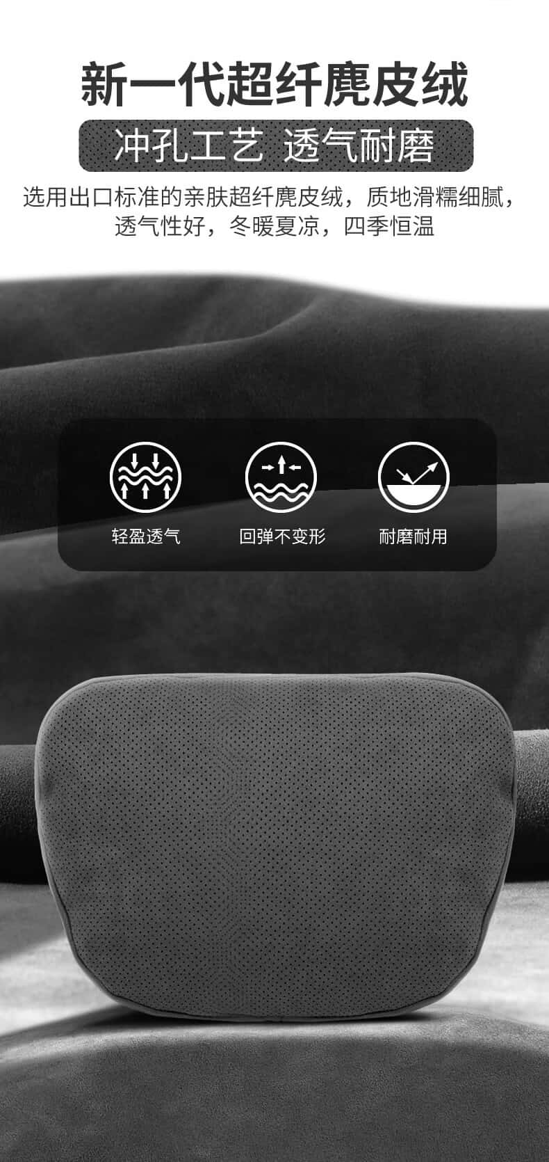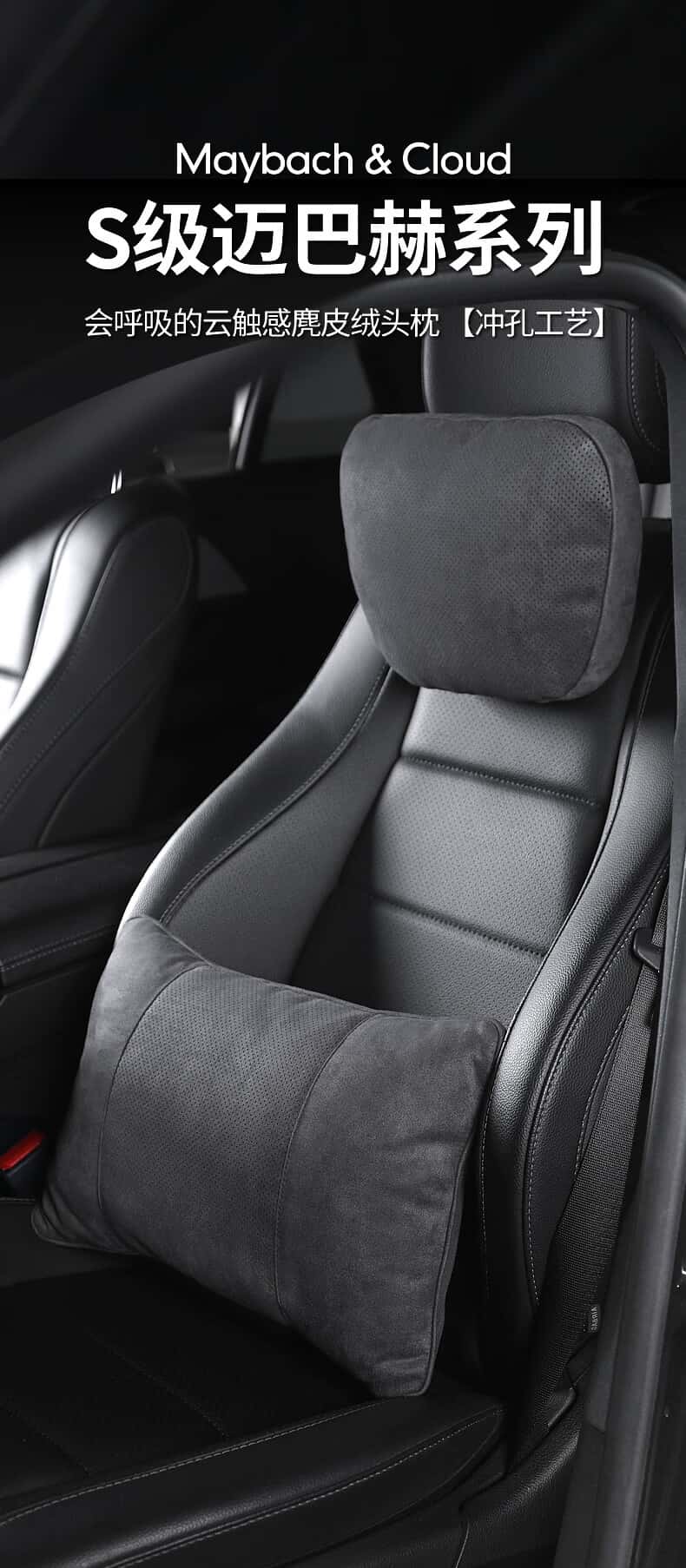 BIMLL B汽车头枕奔驰S级迈巴赫宝马座椅枕头护颈靠枕腰靠车载车用通用款 冲孔黑色头枕1个【生物绒芯】