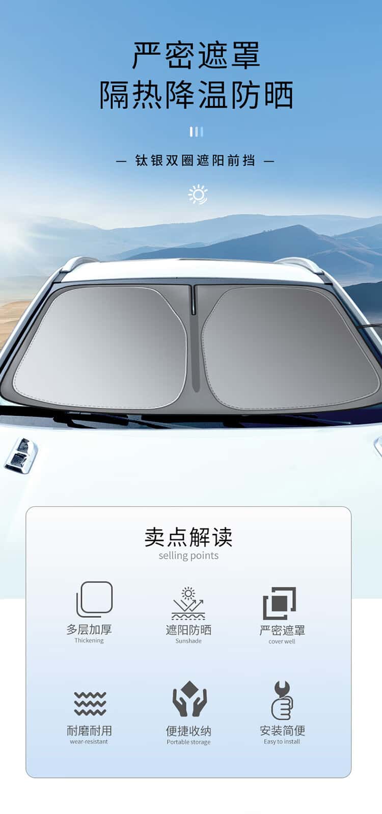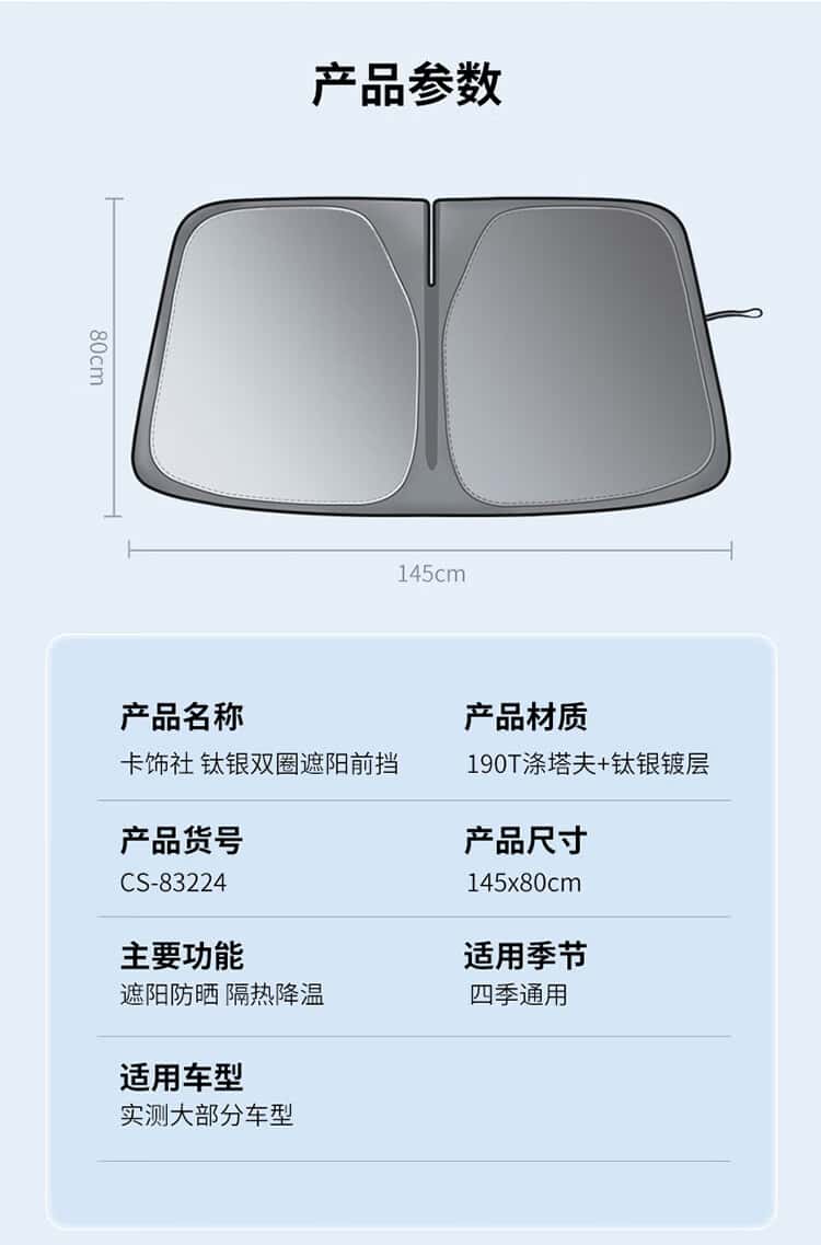商品名称:卡饰社(CarSetCity)2023款汽车遮阳挡遮阳伞车窗遮阳帘前挡遮阳防晒罩 钛银双圈