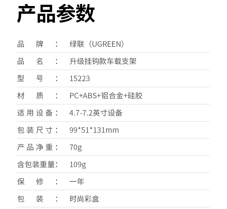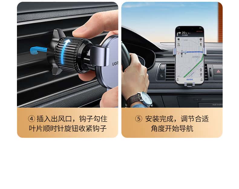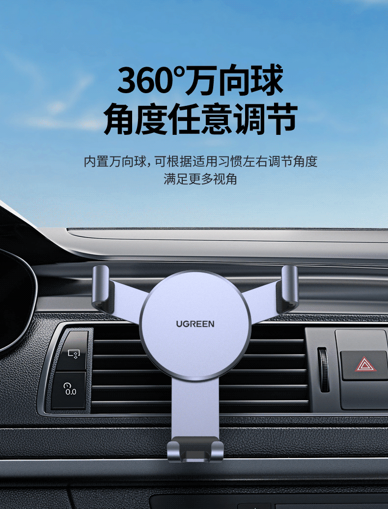 商品名称:绿联 车载手机支架 汽车导航车用手机架出风口固定器车上车内多功能夹