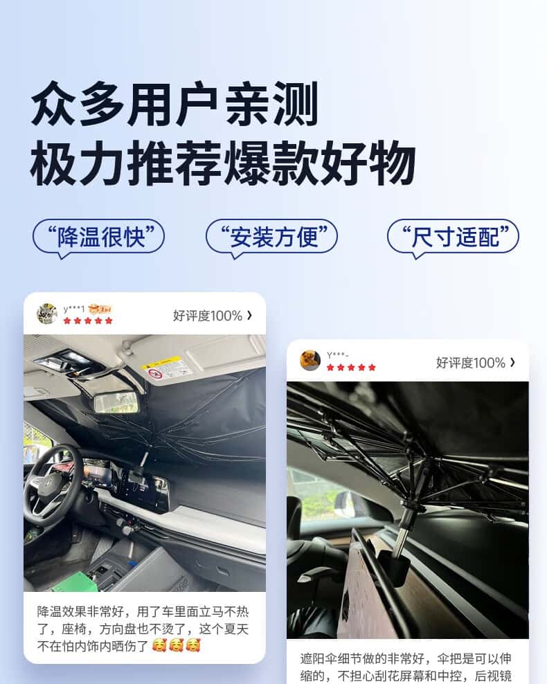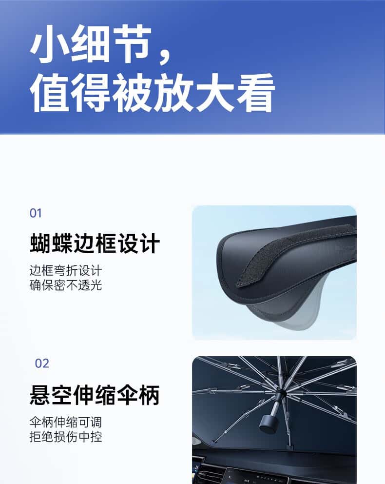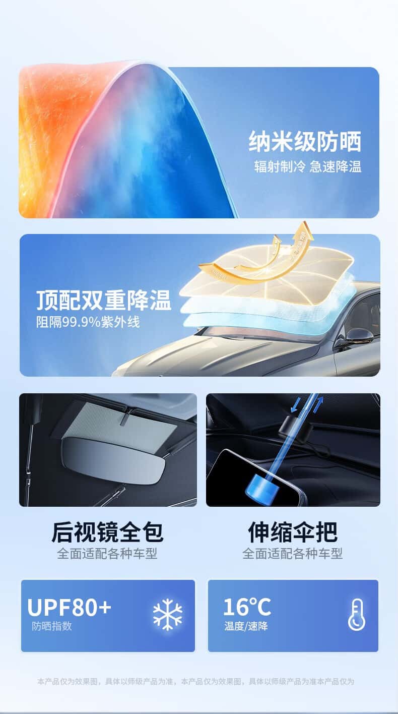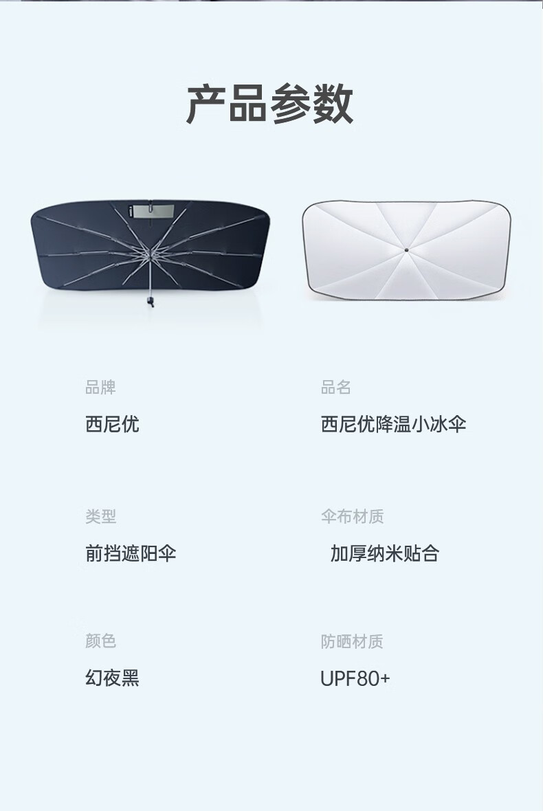 商品名称:西尼优(CEENIU)汽车遮阳伞车内前挡风玻璃防晒窗帘隔热遮光自动伸缩太阳伞式挡板 全车型通用【加厚纳米冰晶顶配款丨全覆盖降温空调伞】
