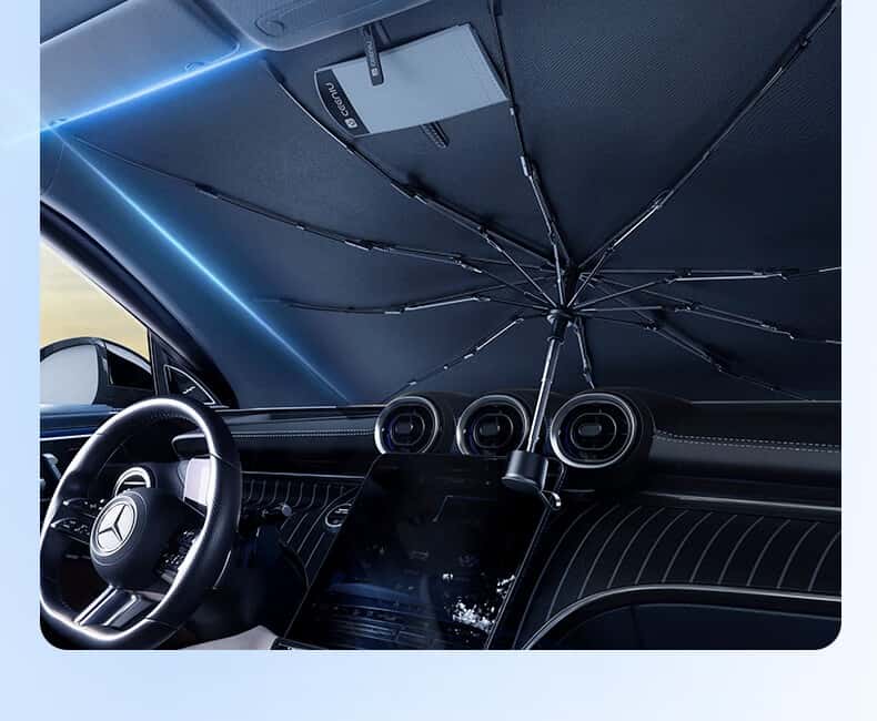 西尼优(CEENIU)汽车遮阳伞车内前挡风玻璃防晒窗帘隔热遮光自动伸缩太阳伞式挡板 全车型通用【加厚纳米冰晶顶配款丨全覆盖降温空调伞】