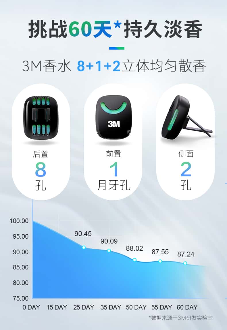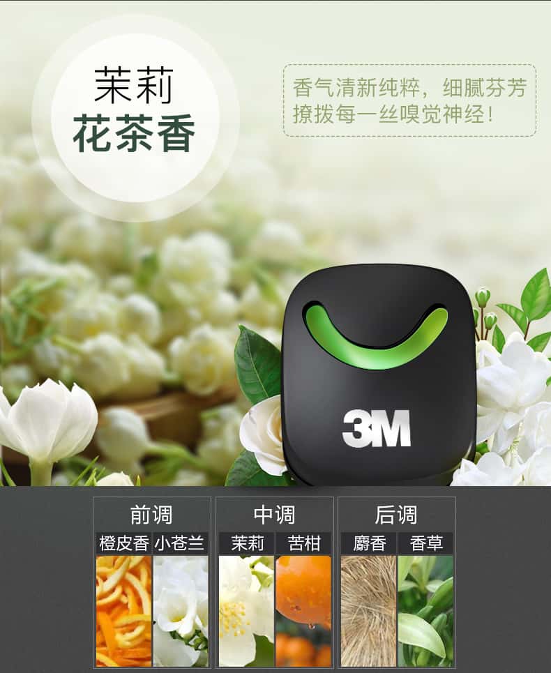 3M车载香薰 汽车香水出风口摆件车内除味空气清新剂茉莉花茶38801