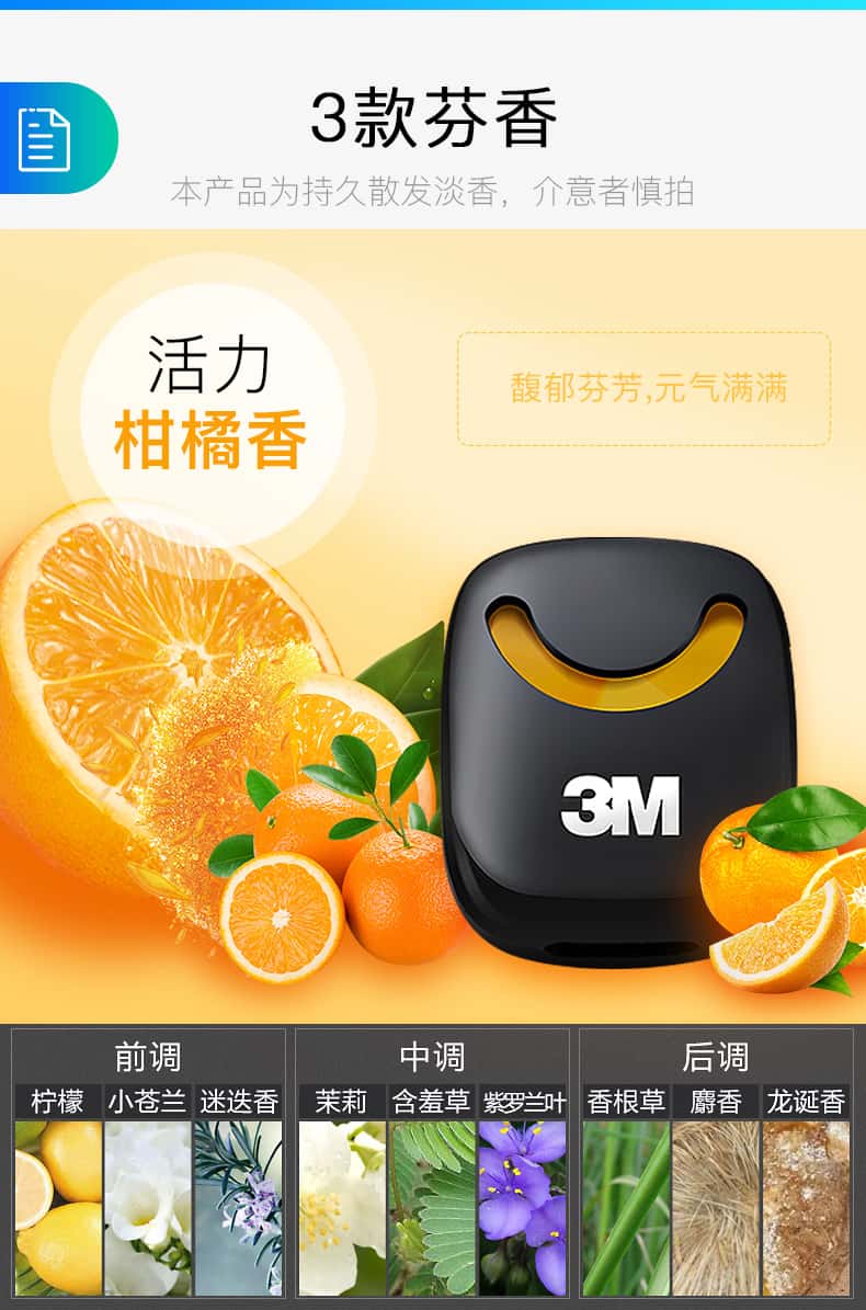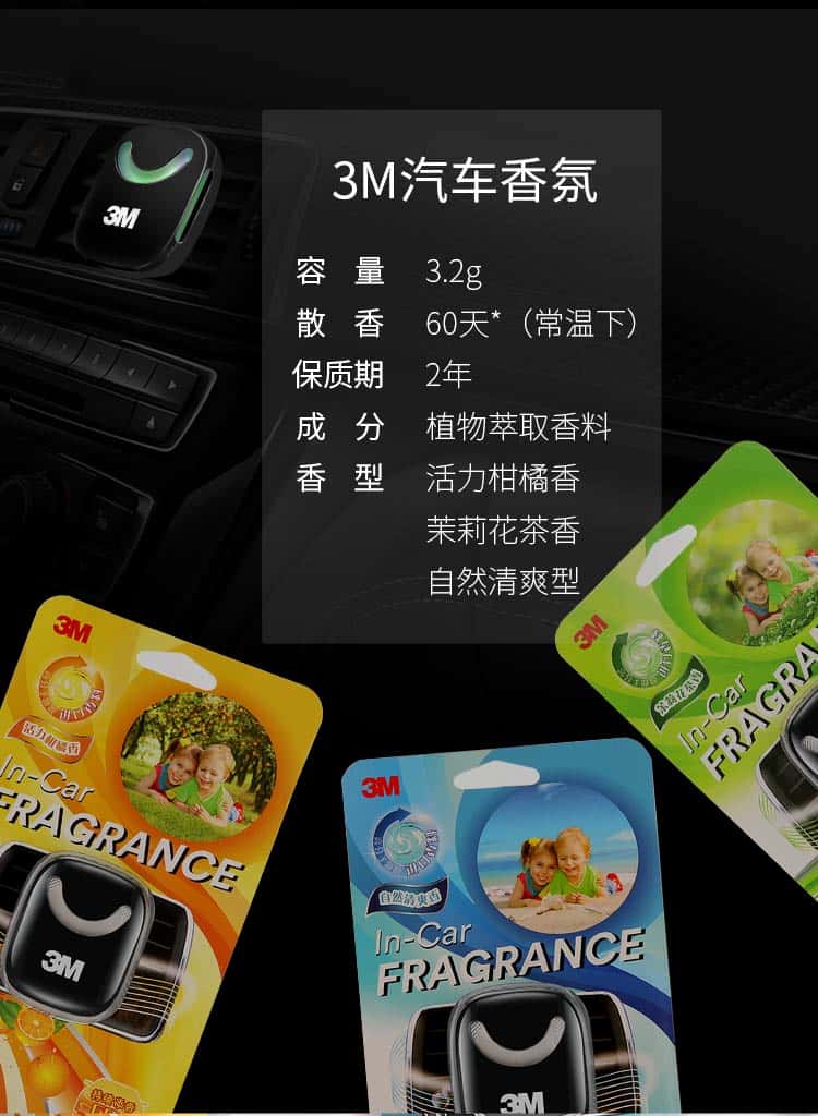 商品名称:3M车载香薰 汽车香水出风口摆件车内除味空气清新剂茉莉花茶38801