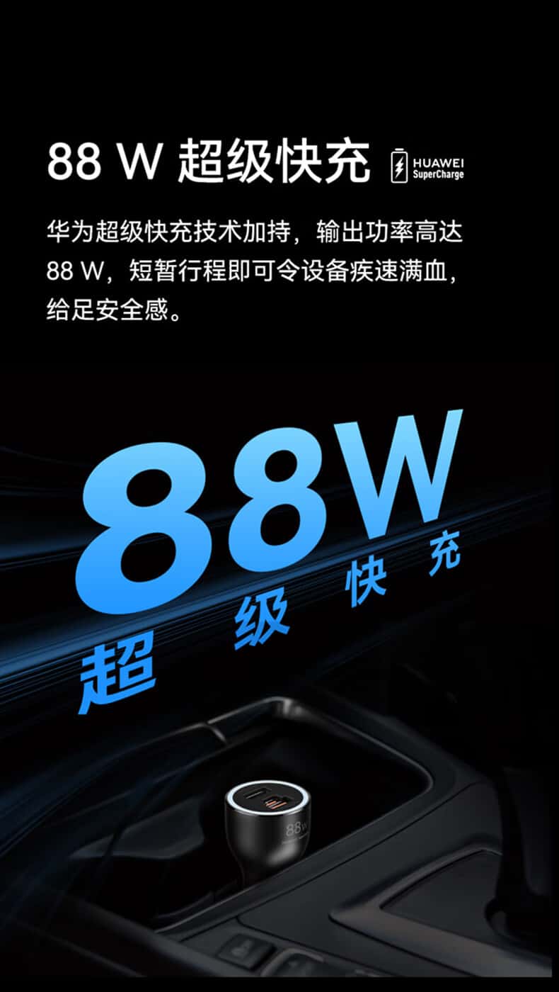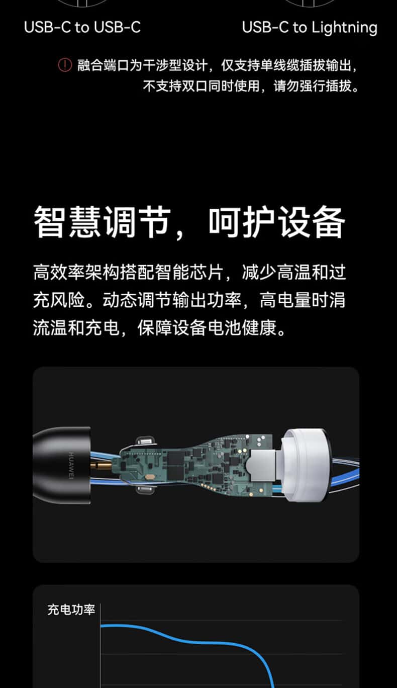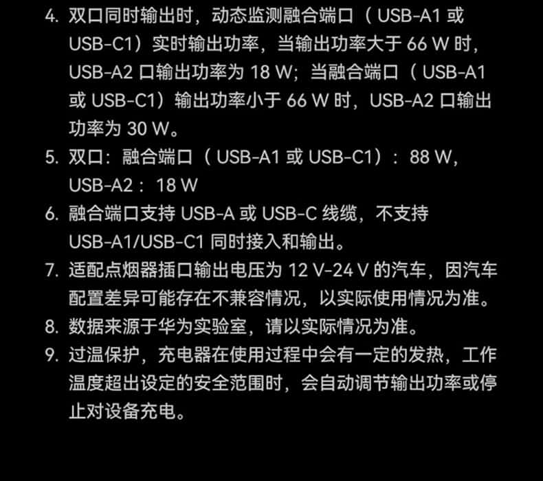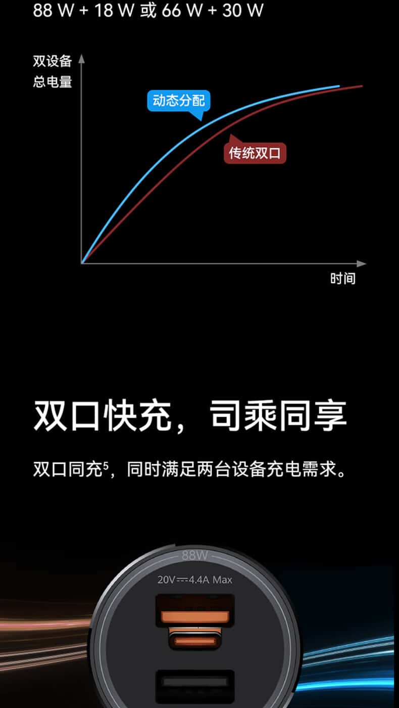 商品名称:华为(HUAWEI)车载全能充/充电器 88W超级快充 点烟器接口 双口功率动态分配