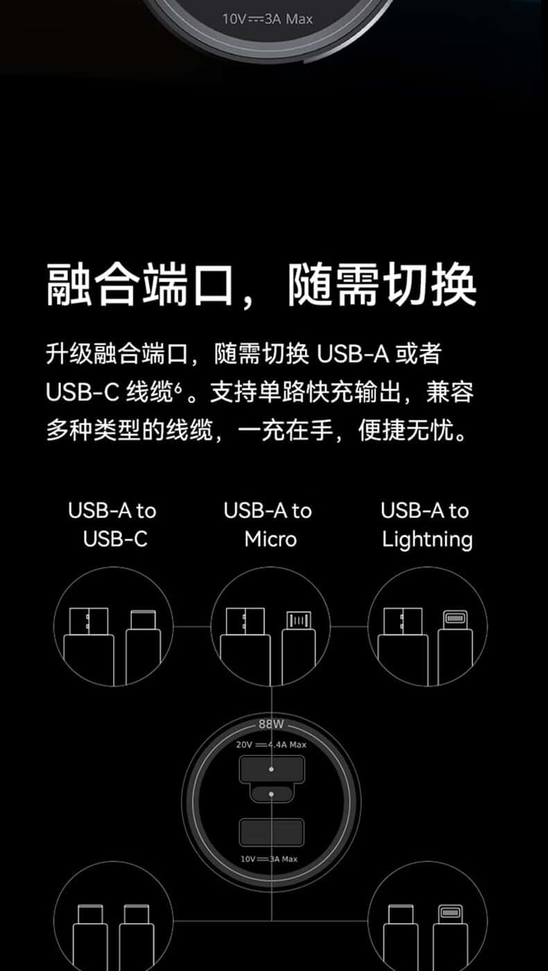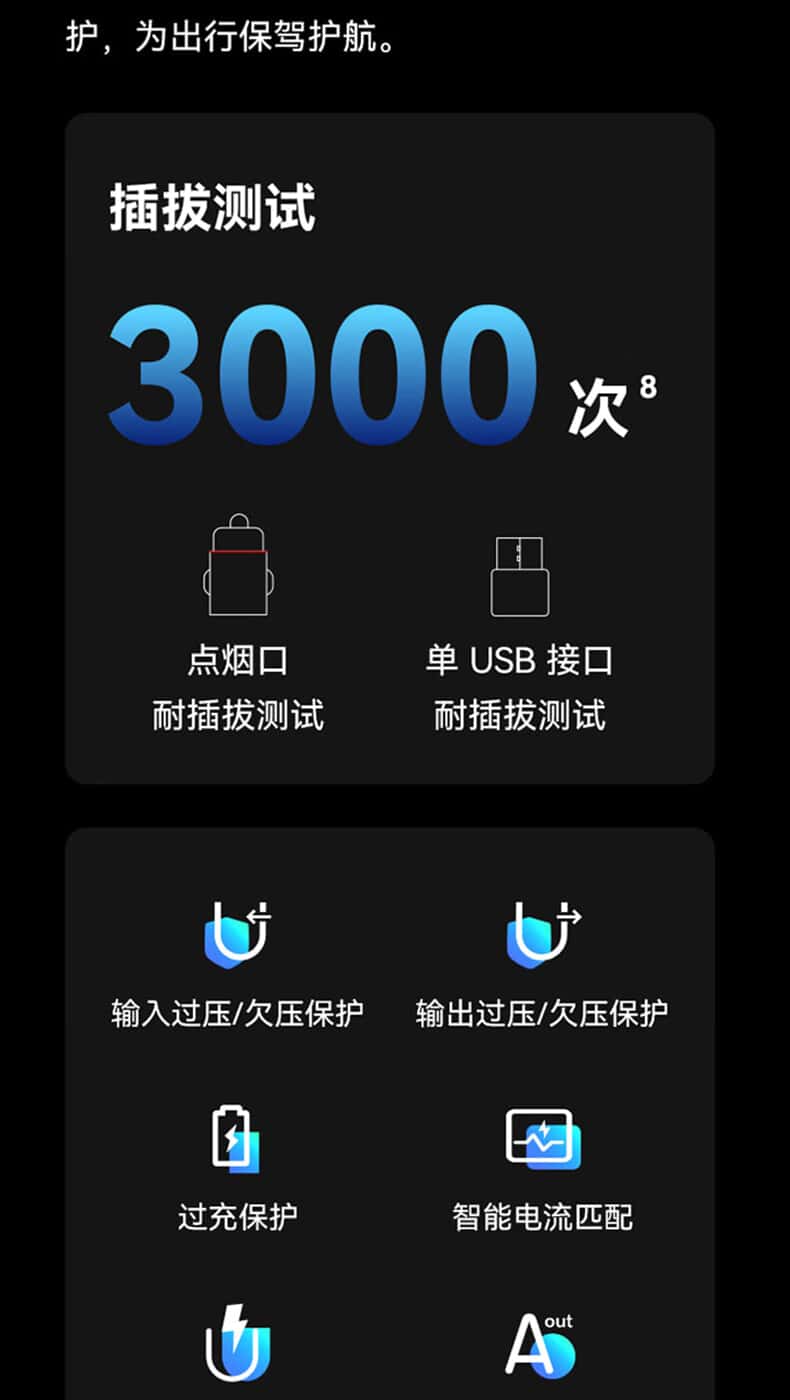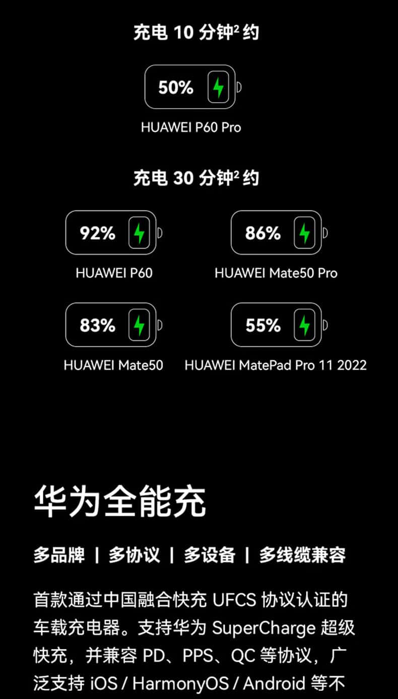 商品名称:华为(HUAWEI)车载全能充/充电器 88W超级快充 点烟器接口 双口功率动态分配