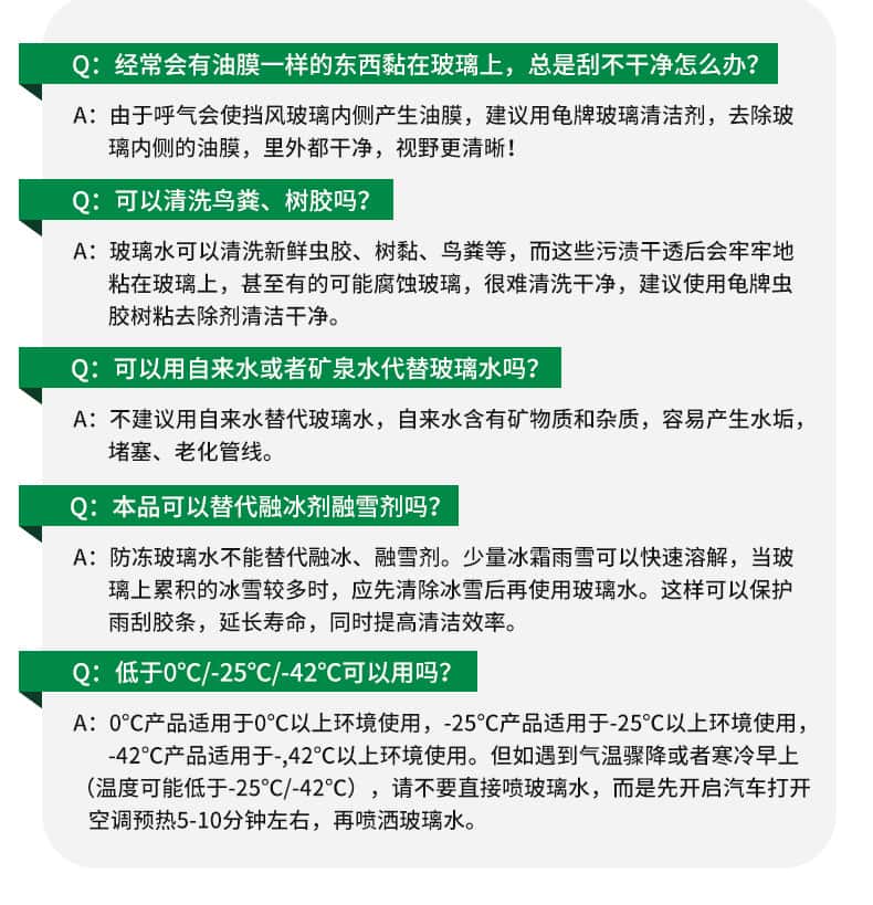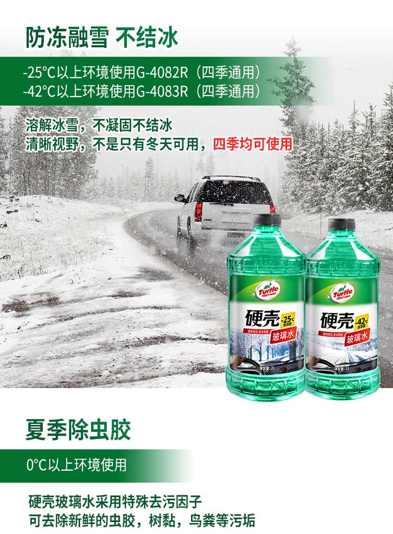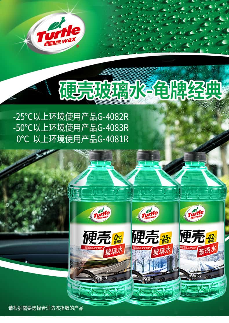 商品名称:龟牌(Turtle Wax)汽车玻璃水防冻-25四季通用0℃玻璃水前挡去油膜清洁清洗去污雨刷 硬壳经典光泽玻璃水0°C 2L 4瓶装