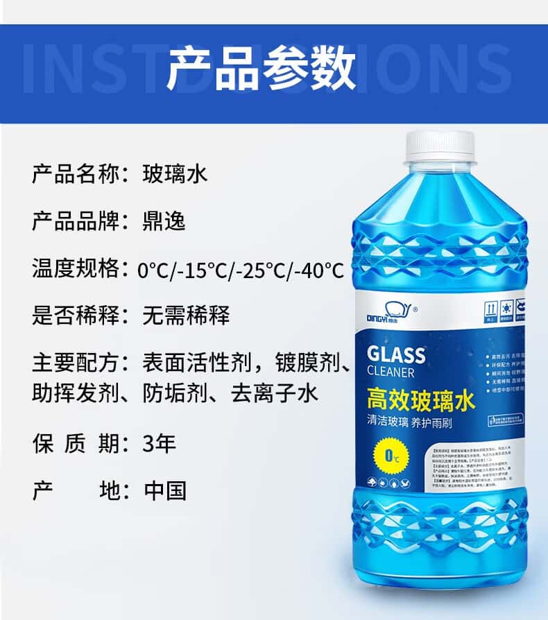 商品名称:鼎逸 玻璃水汽车通用雨刮水冬季防冻-25-40去油膜玻璃水汽车用品 【0度*4瓶】去油膜驱水型