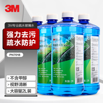 3MPN7018疏水玻璃水0℃ 不含甲醇2升玻璃镀膜驱水汽车玻璃雨刷水4瓶